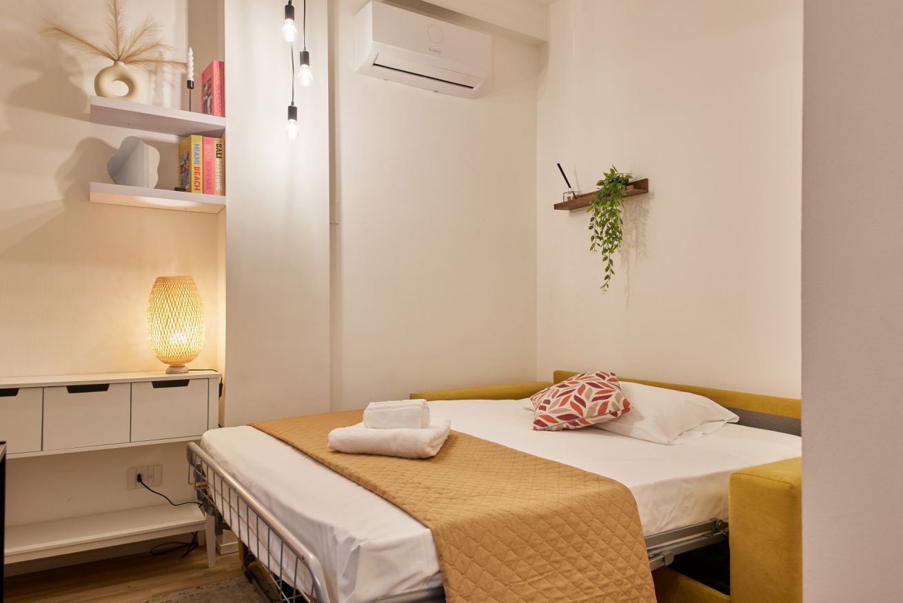 Grazioso bilocale in zona San Siro. Per gli appassionati di calcio e musica con buoni collegamenti per il centro di Milano (metro M1 rossa). L'alloggio è composto da una camera matrimoniale, un luminoso soggiorno con balcone, divano letto doppio, angolo cottura, 1 bagno con doccia, aria condizionata di ultima generazione, wi-fi veloce, smart tv, lavatrice ed ogni comfort.