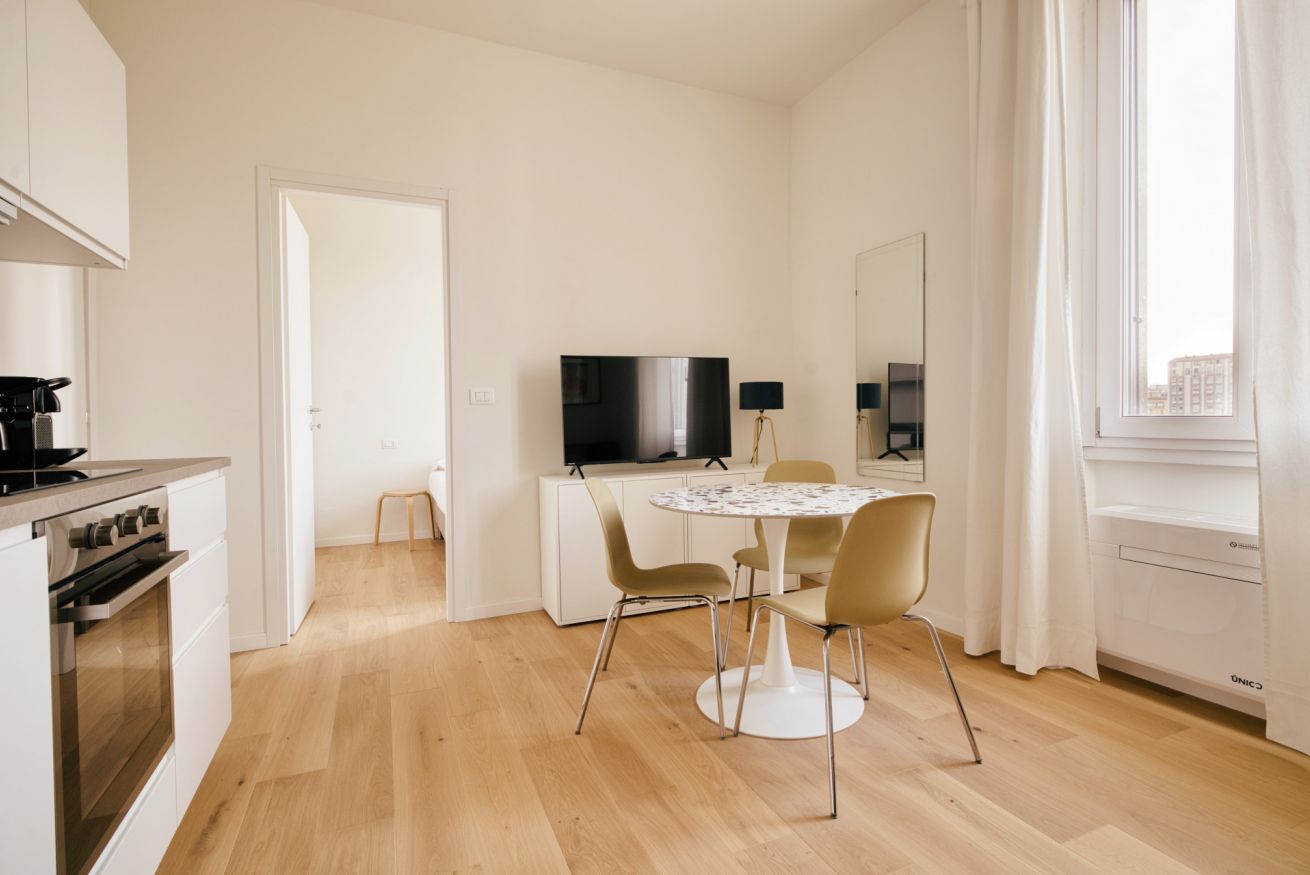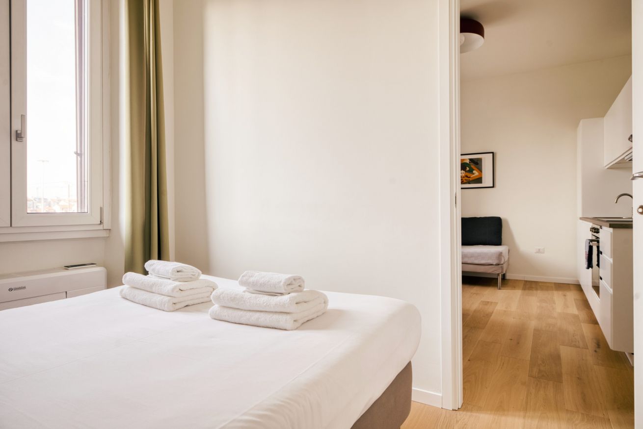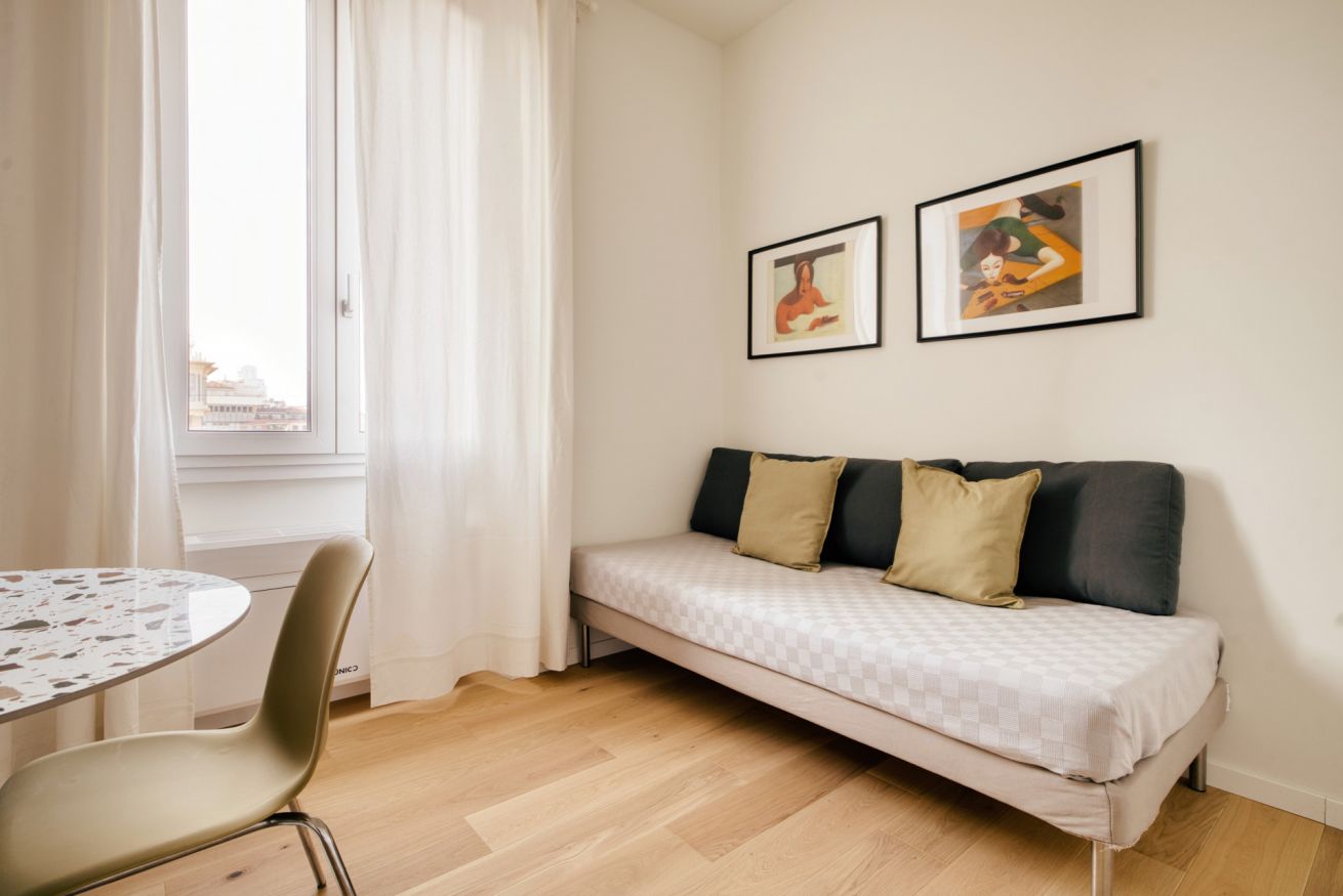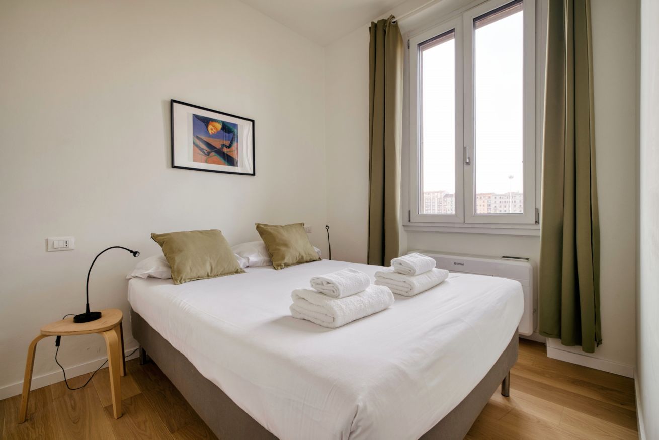 Elegante e strategico bilocale in zona stazione Centrale. L'alloggio è composto da un luminoso soggiorno con divano letto singolo, angolo cottura, smart TV, un bagno completo e una camera da letto matrimoniale. L'alloggio è dotato di aria condizionata e internet wi-fi, lavatrice ed ogni comfort.