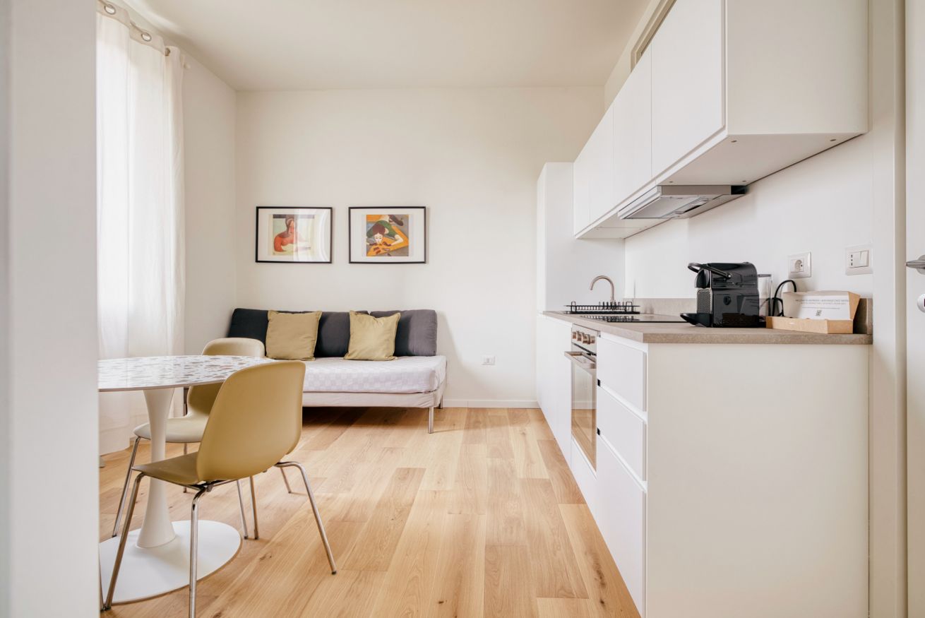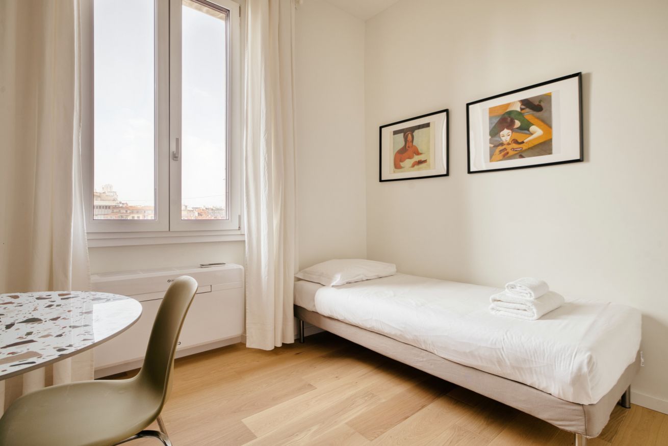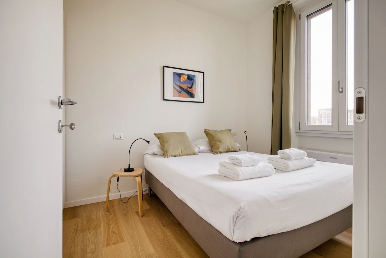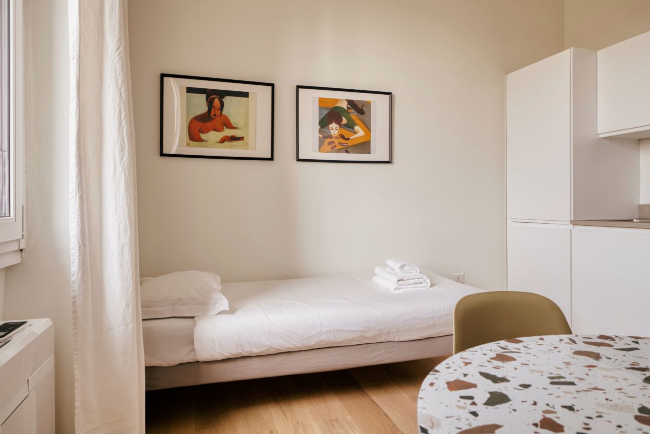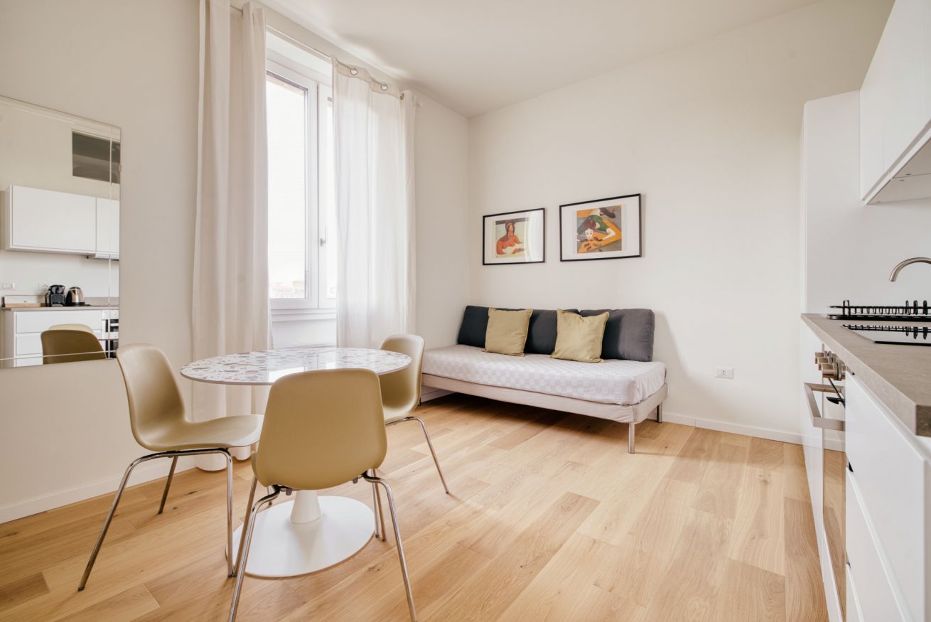 Elegante e strategico bilocale in zona stazione Centrale. L'alloggio è composto da un luminoso soggiorno con divano letto singolo, angolo cottura, smart TV, un bagno completo e una camera da letto matrimoniale. L'alloggio è dotato di aria condizionata e internet wi-fi, lavatrice ed ogni comfort.