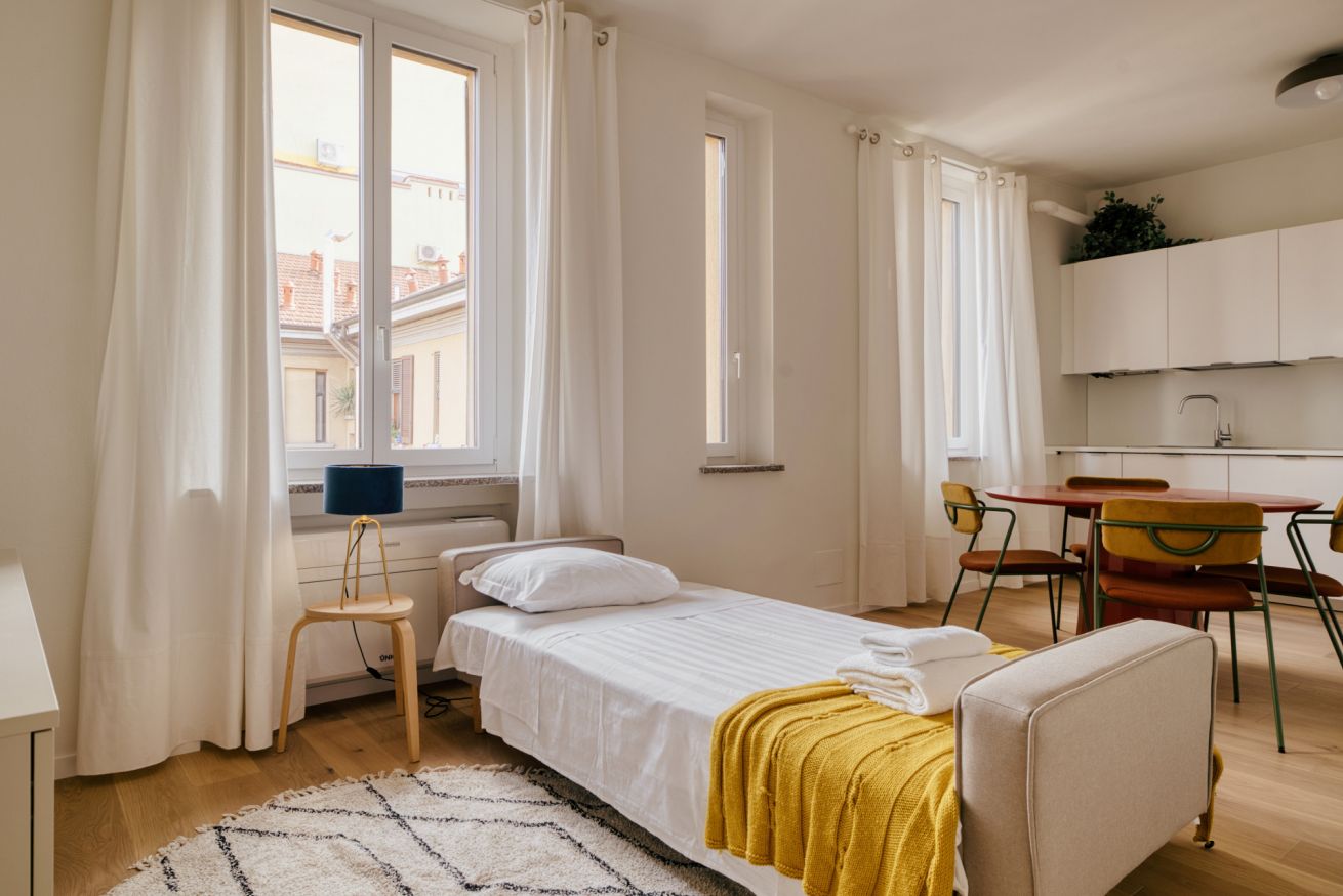 Elegante e strategico bilocale in zona stazione Centrale. L'alloggio è composto da un luminoso soggiorno con divano letto singolo, angolo cottura, smart TV, un bagno completo e una camera da letto matrimoniale. L'alloggio è dotato di aria condizionata e internet wi-fi, lavatrice ed ogni comfort.